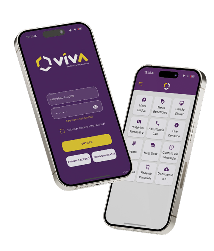 Como associado da Viva Benefícios, você tem à disposição um aplicativo completo e intuitivo, onde pode gerenciar sua proteção veicular, acessar benefícios exclusivos e contar com atendimento personalizado sempre que precisar.